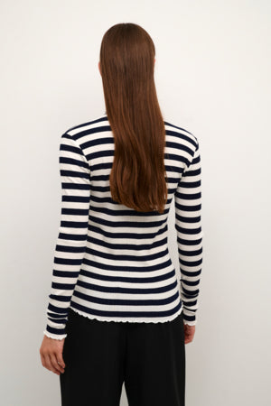 A sleek essential your wardrobe needs, this long-sleeved T-shirt is designed with a slim fit that flatters the figure while offering effortless comfort. The stripe pattern adds a timeless appeal, making it perfect for casual styling. Crafted from LivaEco™ viscose with added stretch, this top feels soft against the skin and moves with you throughout the day.