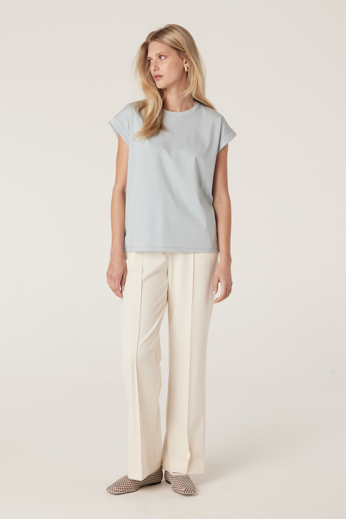 Made from a soft touch Pima Cotton, this regular fit tee is the perfect elevated basic. Featuring a crew neck and dropped shoulder with rolled cuff detail, it's a must have in your everyday wear wardrobe.