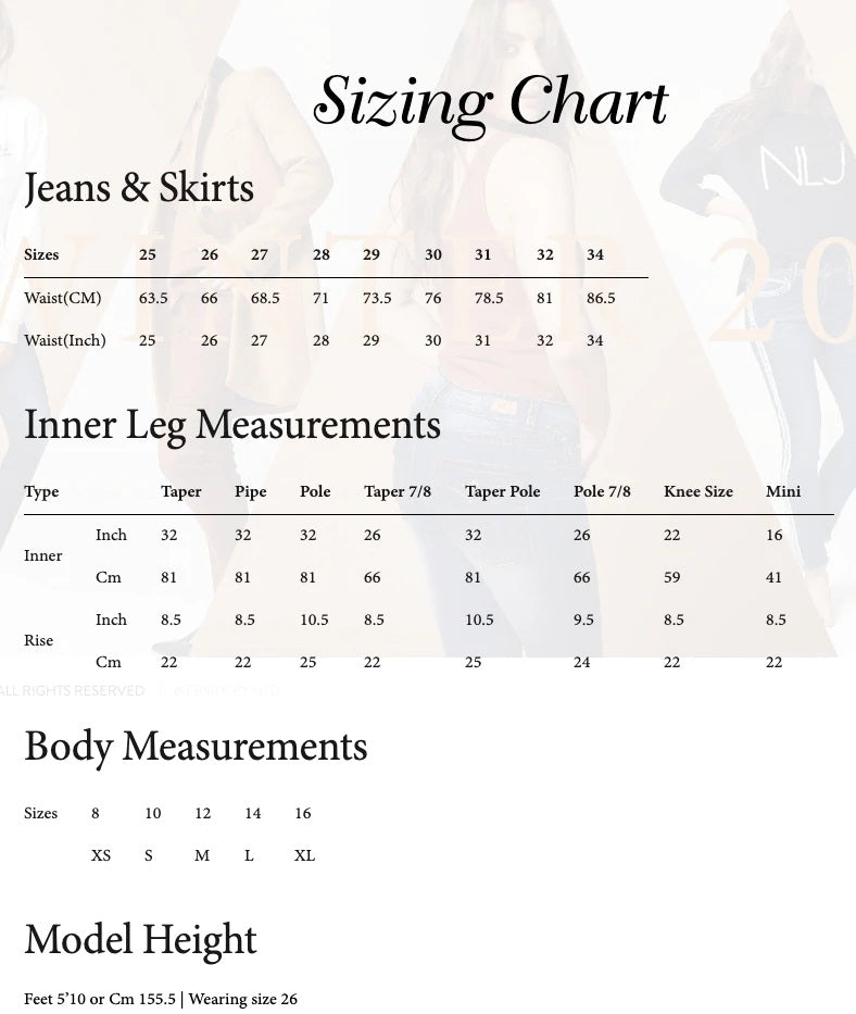 Model is 179 cm tall with 86 cm bust, 69 cm waist & 99 hips wearing size XS\