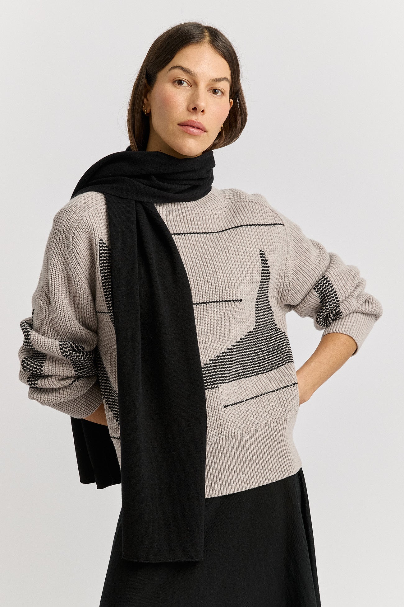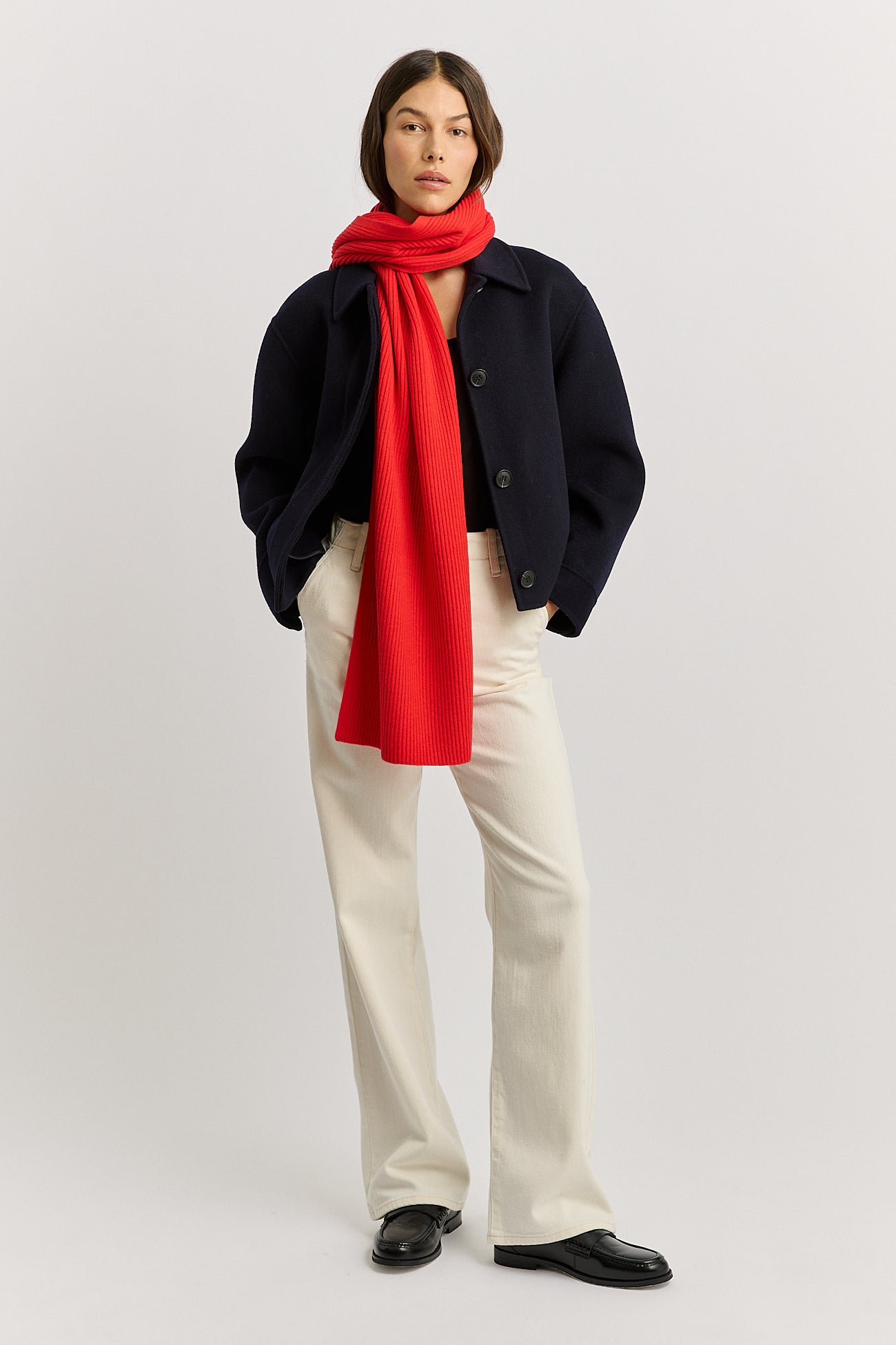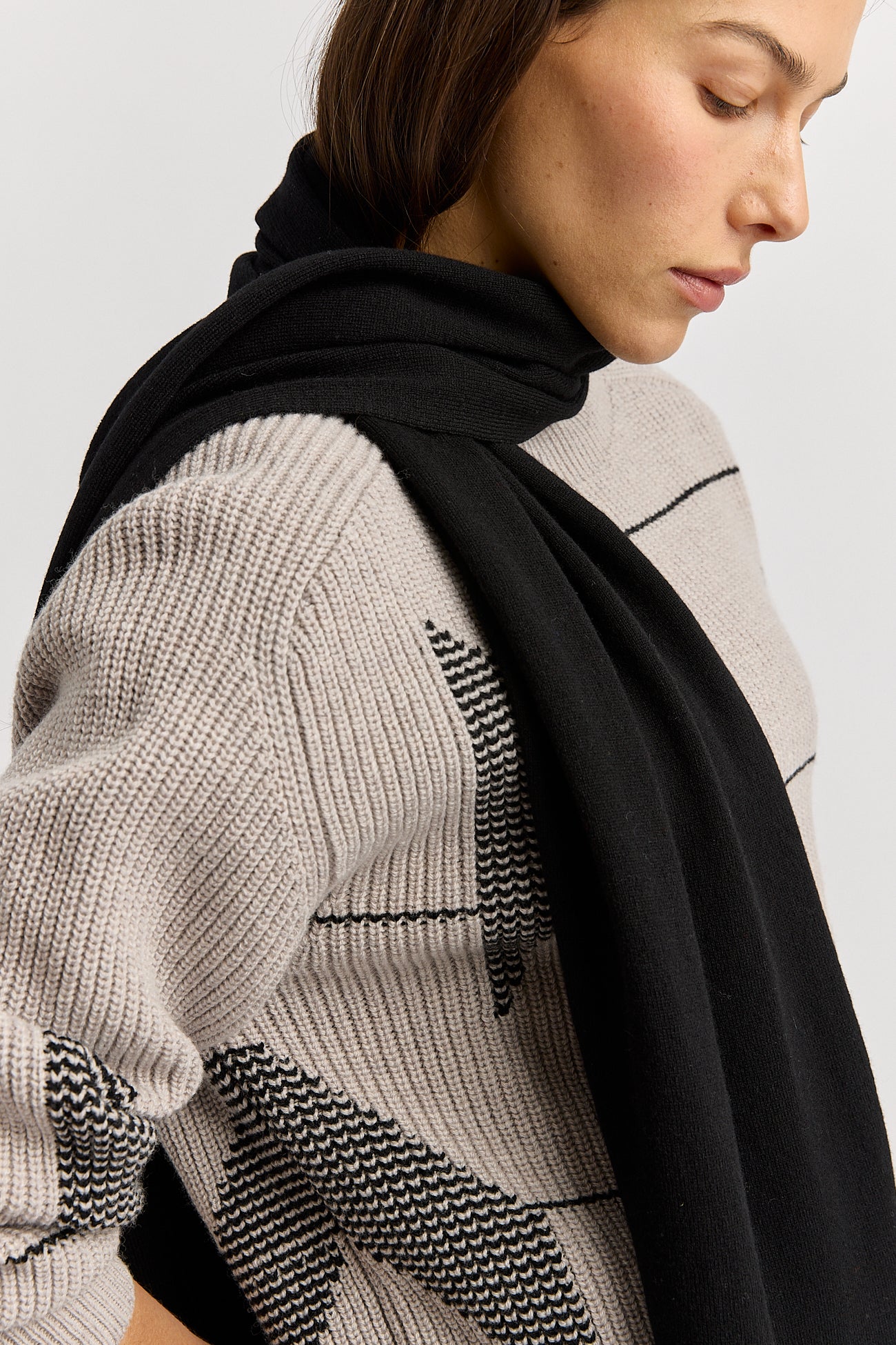 The Fine Rib Scarf is a practical everyday knitted with a soft rib surface.
