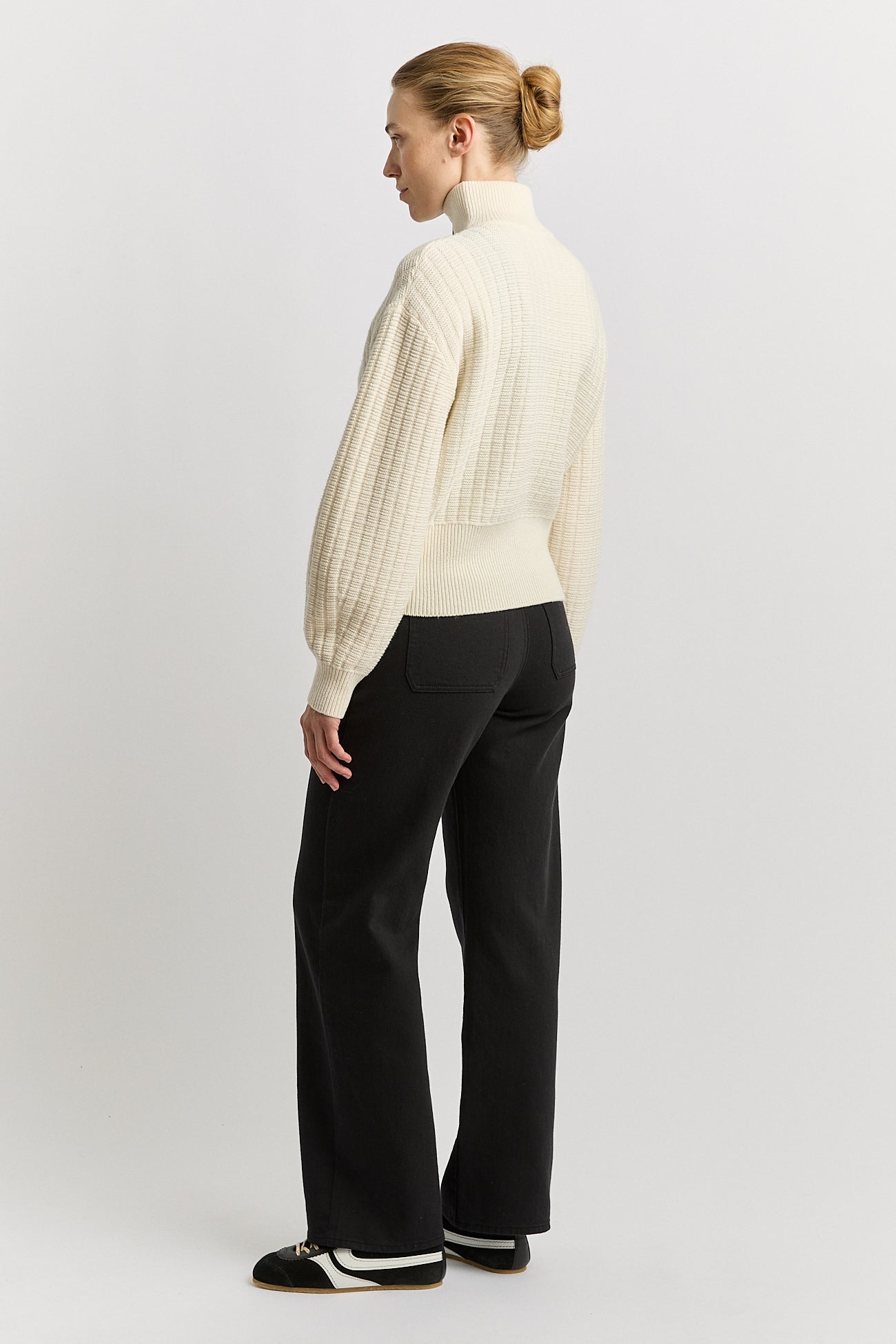 This piece is made at our fully-fashioned knitting mill located in Shanghai City, China. Each year, our Director of Production visits our partners in China to quality control and ensure their practices meet our exacting ethical standards.