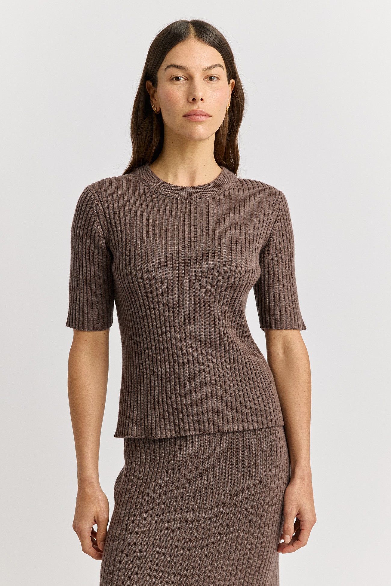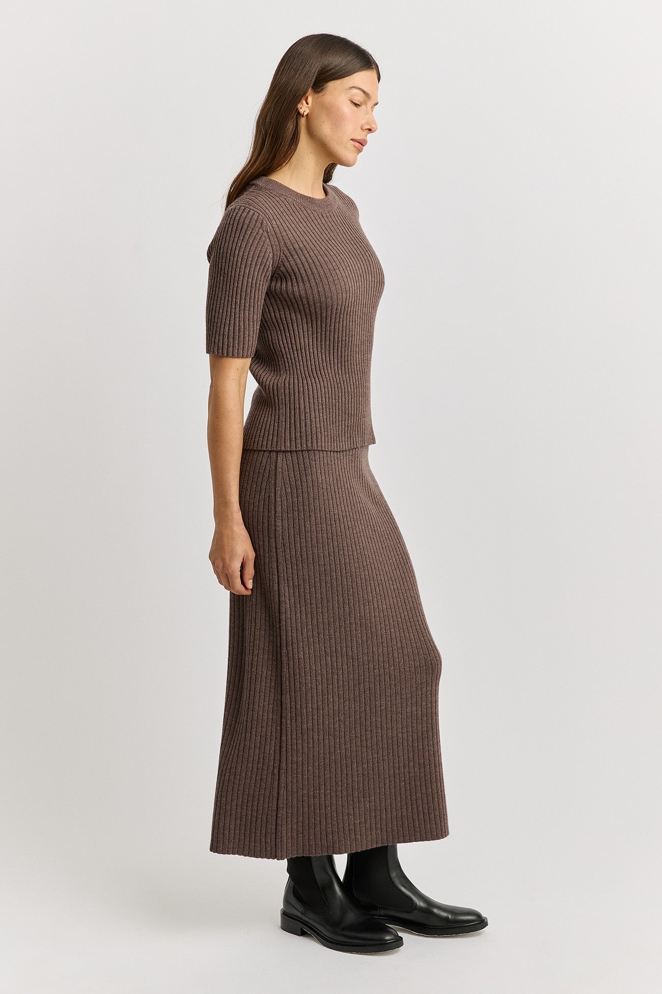 Merino Rib Skirt looks amazing and is so easy to wear, match it with the TOORALLIE Merino Rib Knit Top.