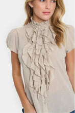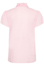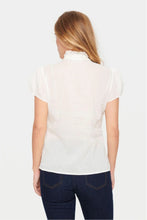 Shirt in 100% cotton with short sleeves, button-down collar, and fringe detailing on the front of the chest. The shirt is in a lightweight woven quality. The model is 179 cm tall and is wearing a size M.