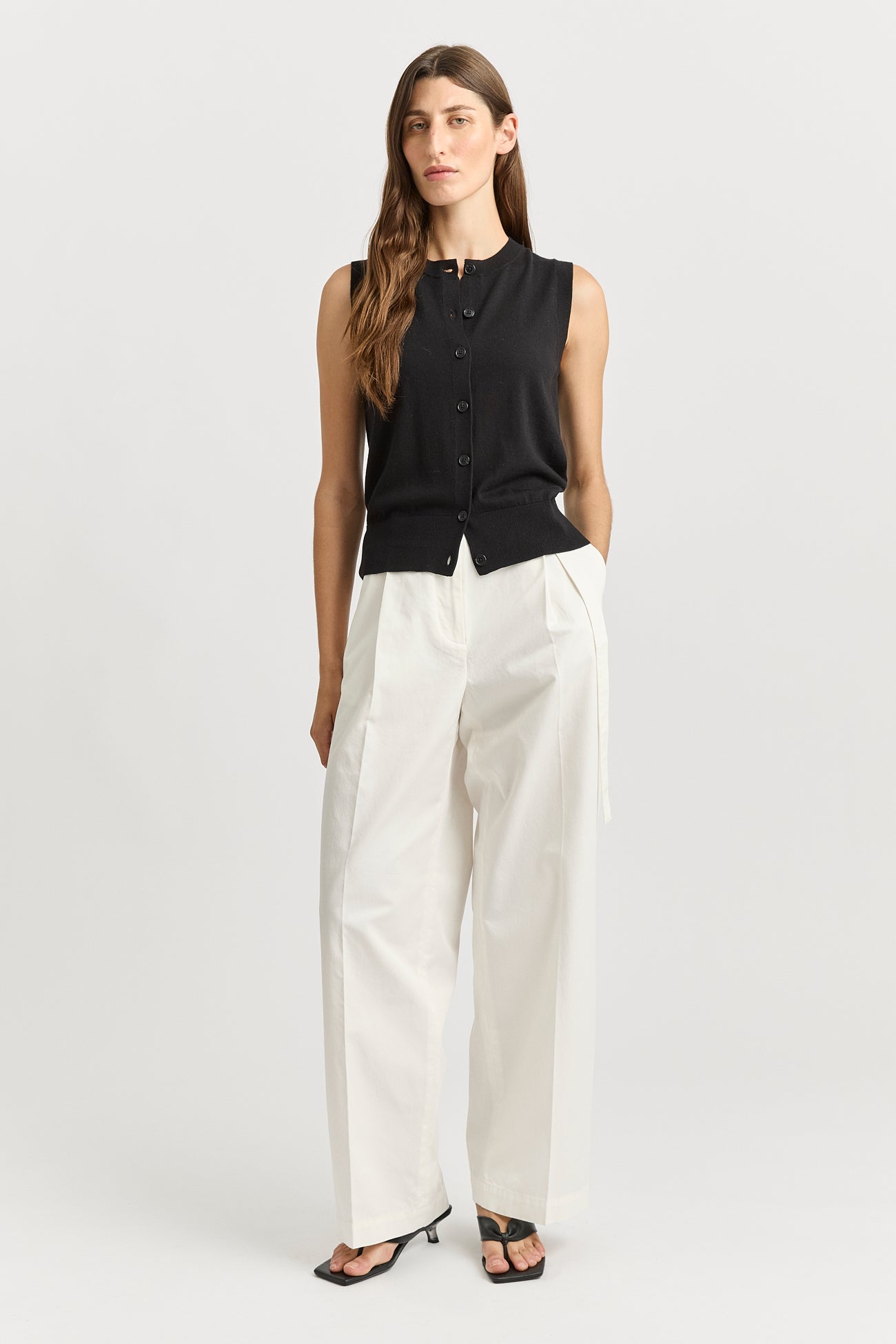 The Fine Button Tank is a sleeveless summer style made from lightweight Merino-Cotton. Designed with a button-down front, regular fit, and fine rib trim across the waistband and round neckline.