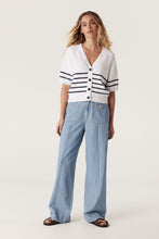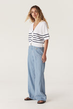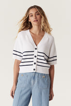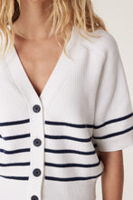 Featuring contrast stripe details across the body and raglan sleeves, the Riviera Cotton Knit Top offers a regular fit in a medium weight knit. Its cropped length and front button closure add to its stylish design.