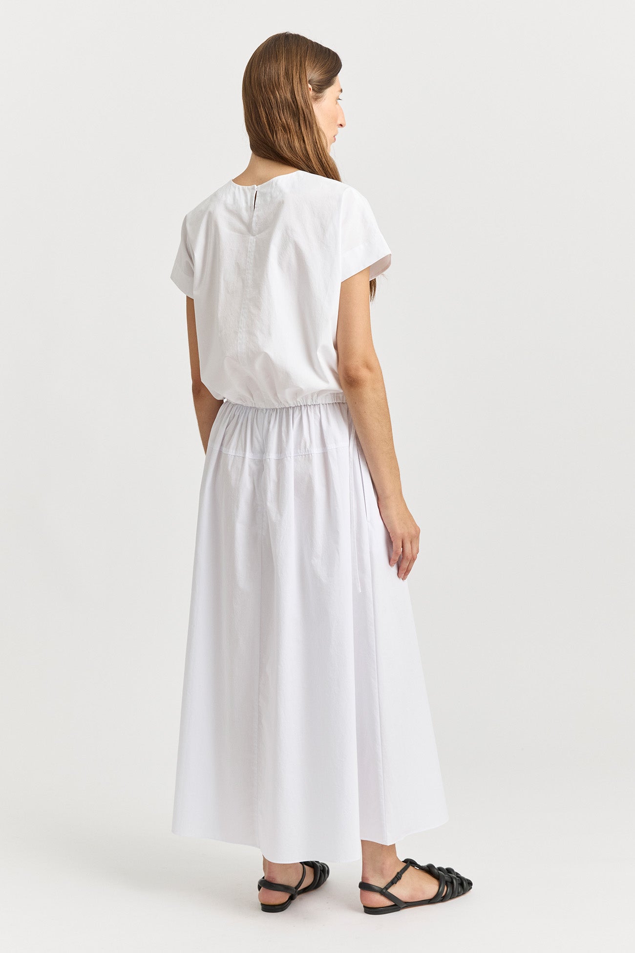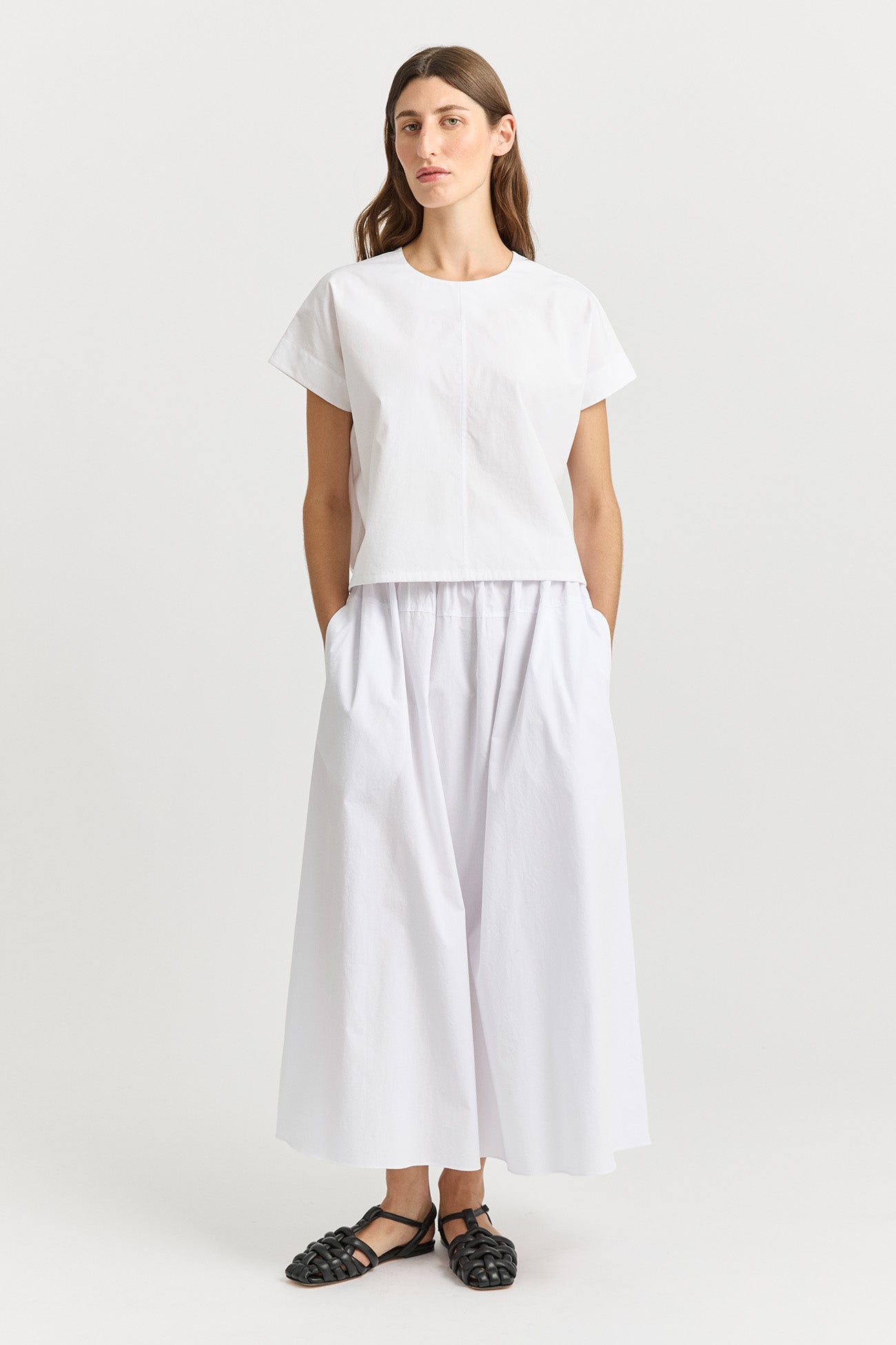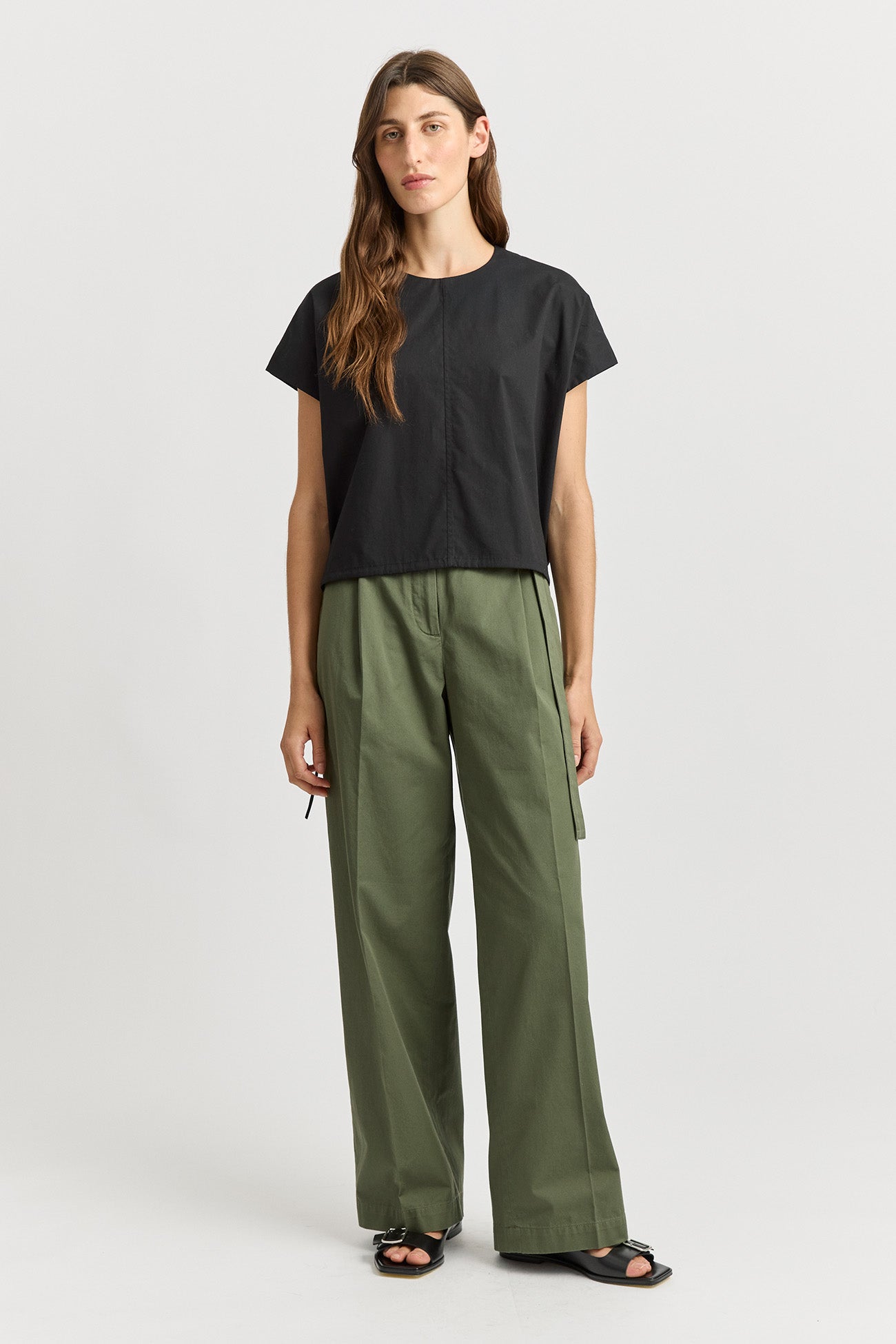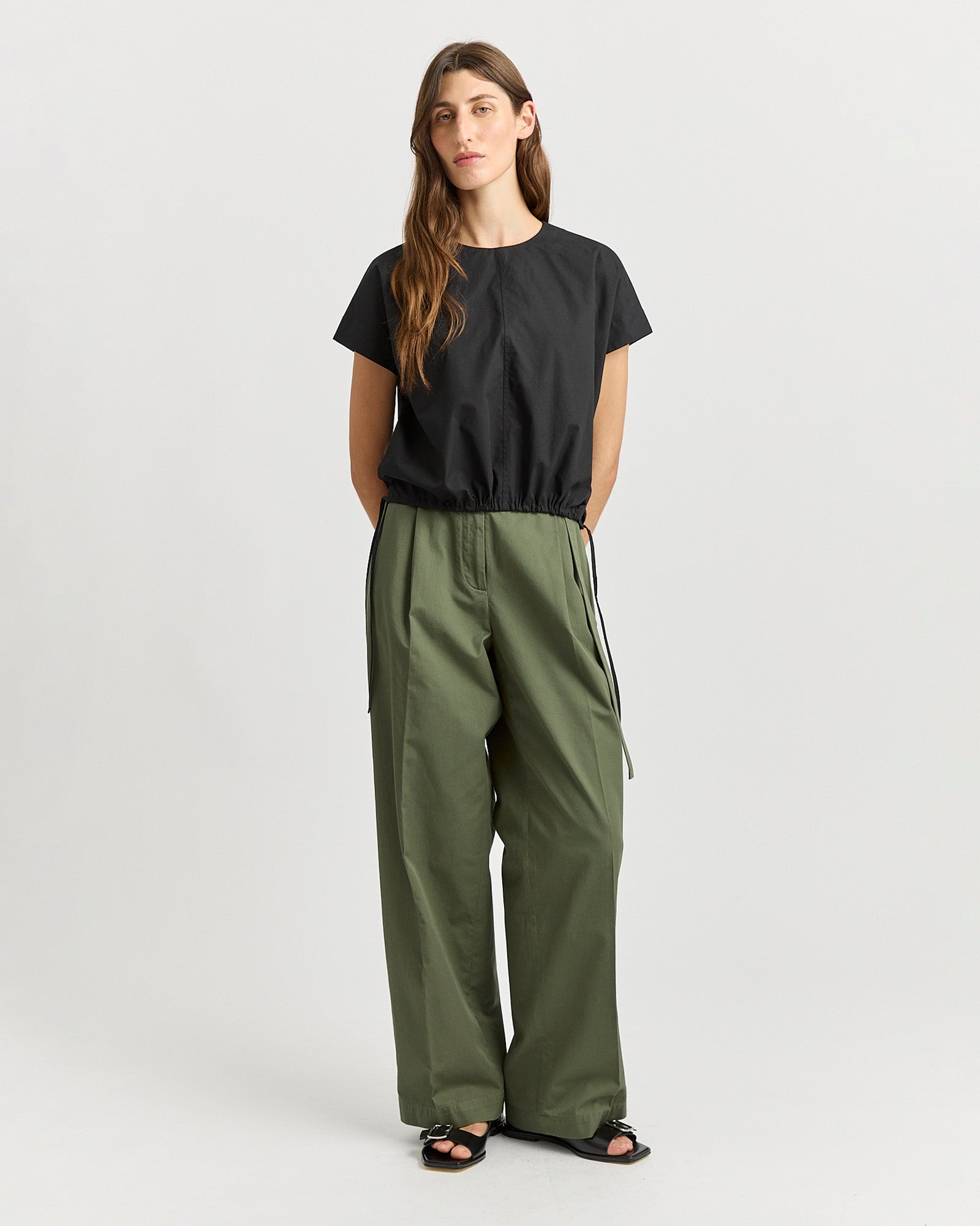 The Cotton Drawstring Top is a versatile style cut from a crisp Cotton Poplin. The boxy silhouette can be pulled in at the waist to create soft gathers.