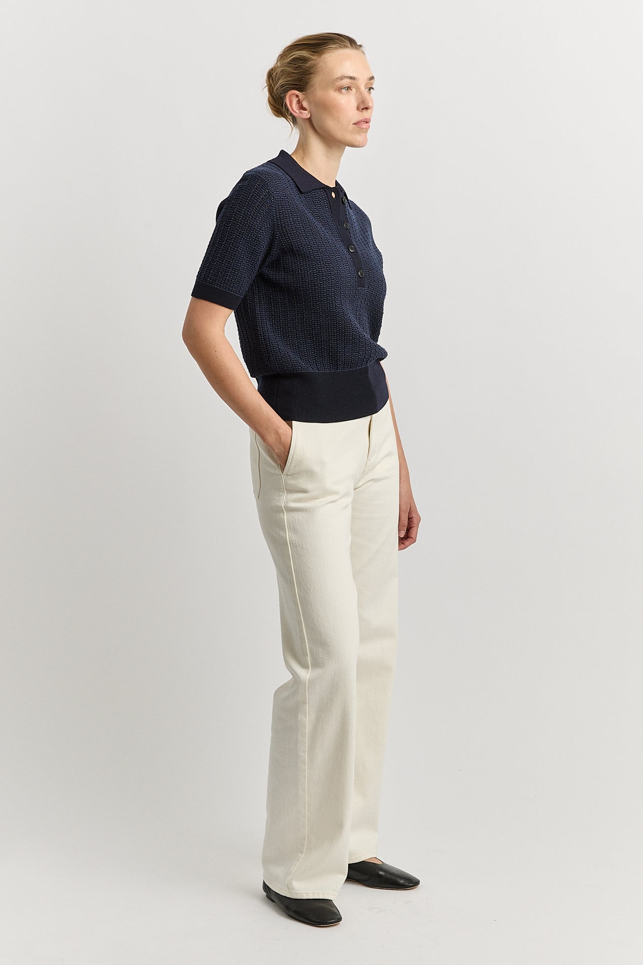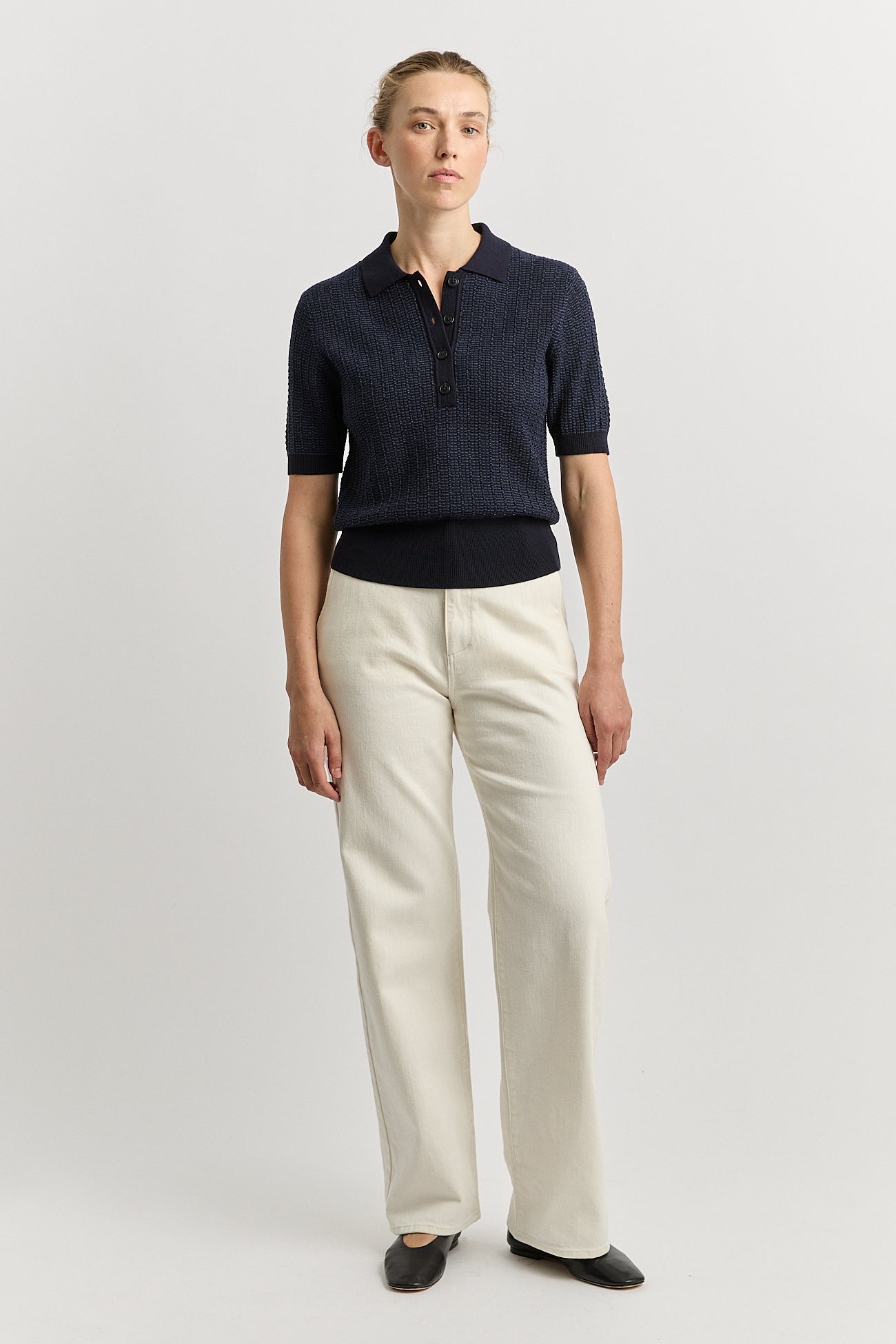 TOORALLIE Pointelle Knit Polo Top