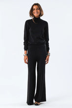 The Beaumont blouse is a classic and timeless black turtleneck. This long-sleeved blouse is ideal for the autumn and winter months. The high collar and slim fit give it a sophisticated look, which can be worn both on its own or under a jacket. The ribbed details on the cuffs, neckline, and hem ensure a comfortable fit that holds its shape throughout the day. Made from a stretchable black lurex material, it ensures a comfortable fit and makes it ideal for both everyday wear and festive occasions. The Beaumont blouse is beautifully styled with black trousers.