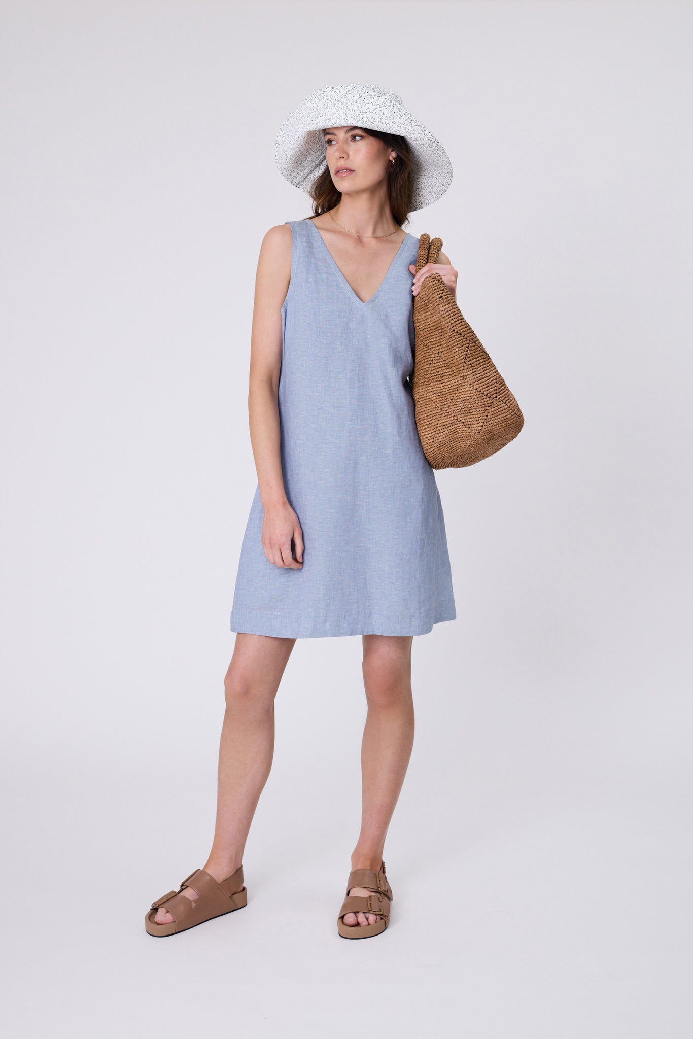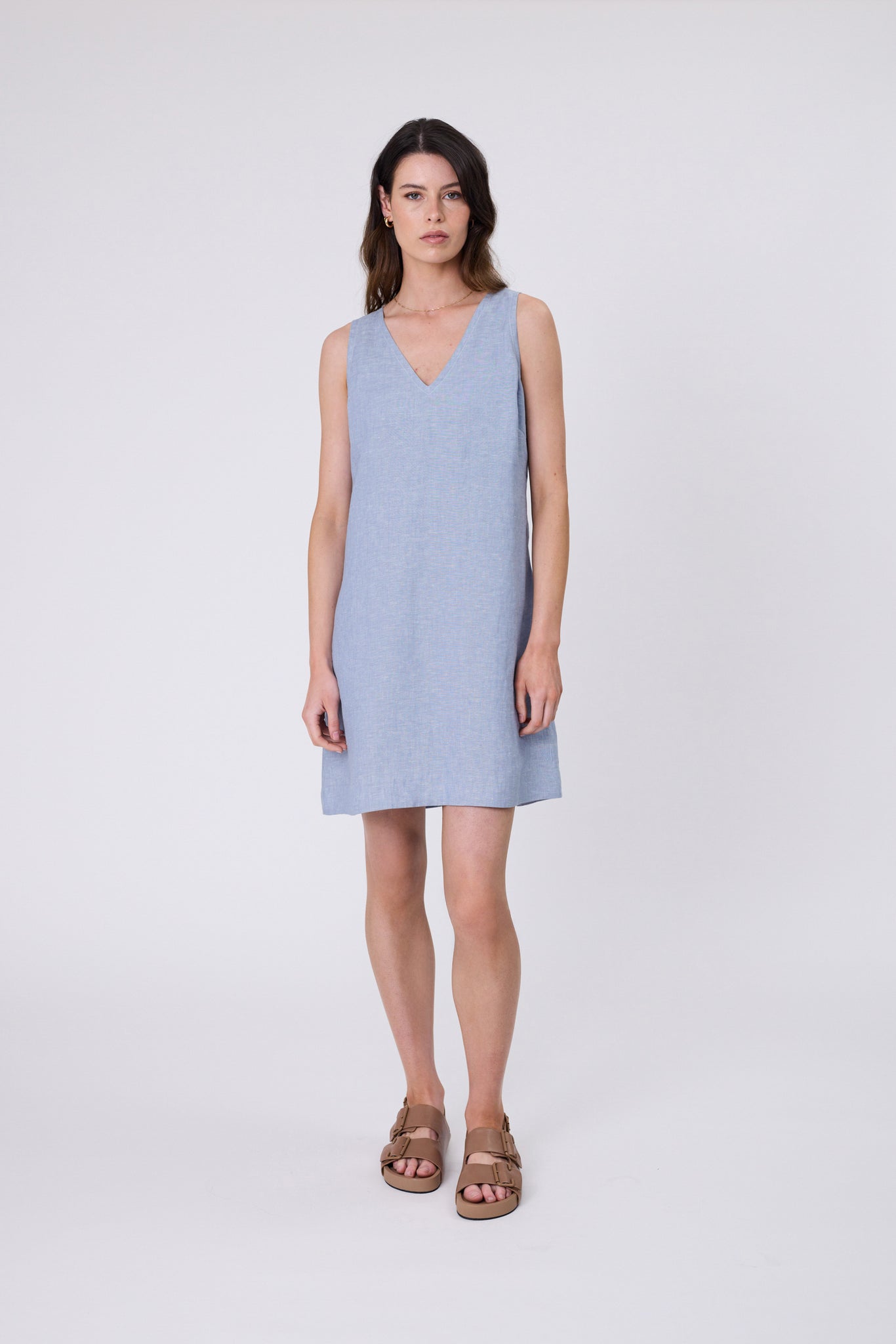 Effortless, fun and designed for easy summer dressing, the Luna Linen Dress is a versatile mini that moves with you from day to night. It’s crafted from pure European linen, offering a lightweight, breathable feel with a beautifully textured finish. Features a flattering A-line silhouette with a V-shaped neckline and back, finished with contrast ivory top stitching. Effortless yet refined, its works for any occasion - wear it with sneakers for relaxed weekends, slides for a summer BBQs, or heeled sandals for drinks with friends.