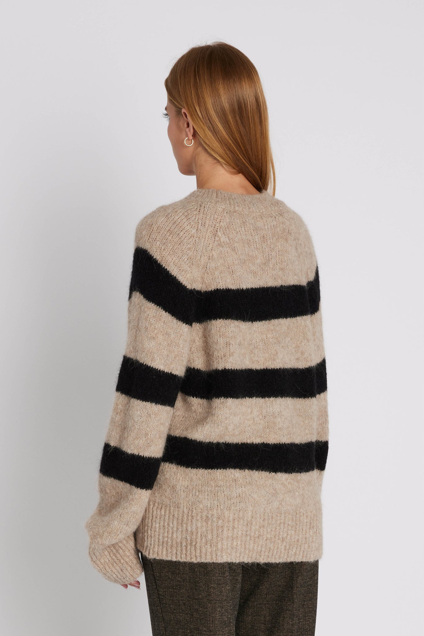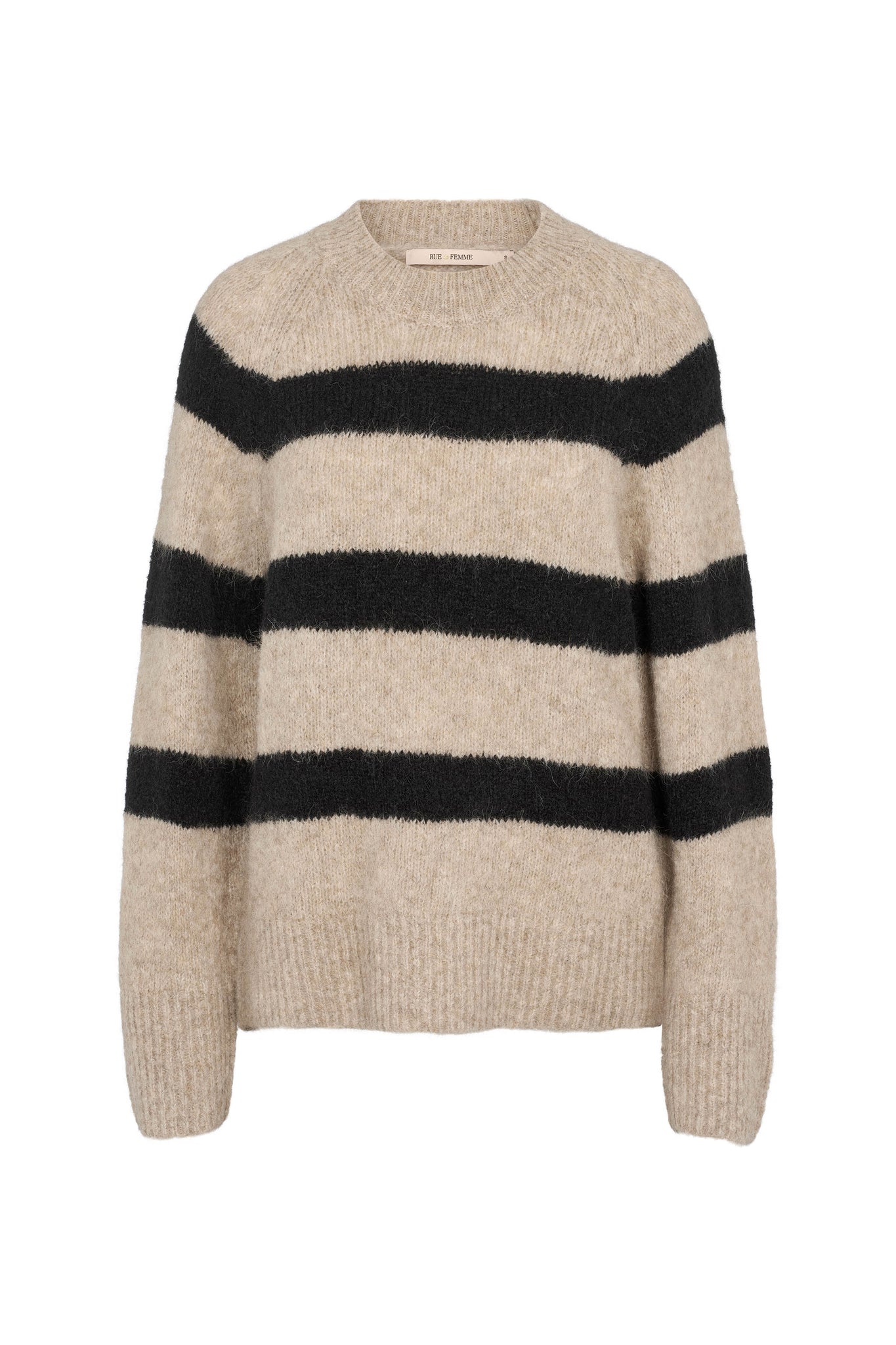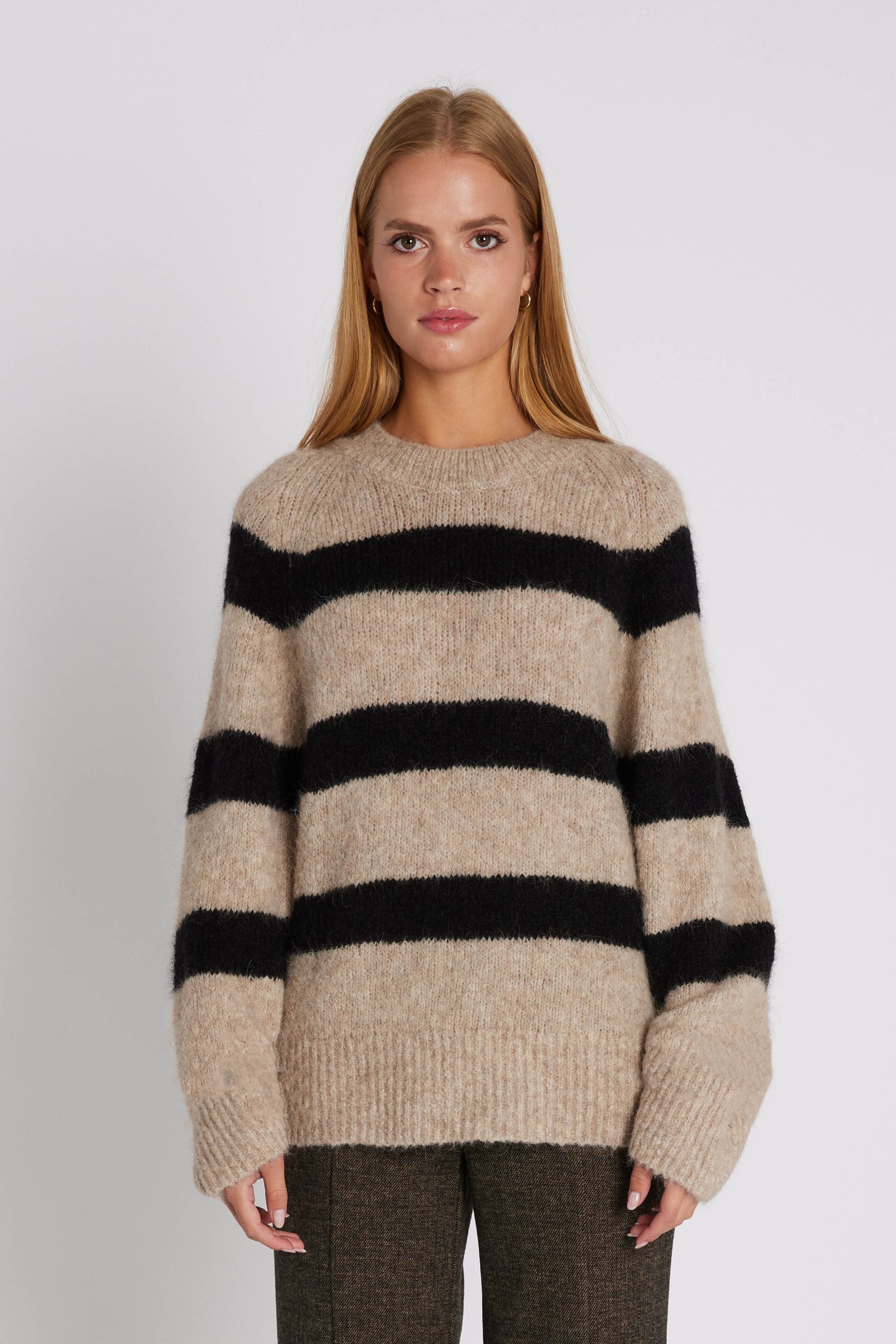 Kenza is a soft knit sweater with wide stripes and a classic crew neck. The relaxed fit and brushed finish create a casual yet stylish look.