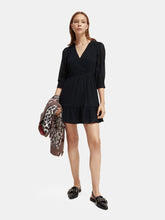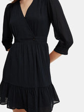 The timeless wrap dress is a versatile fit in any contemporary wardrobe. This lightweight mini dress complements with its defined waist with a button closure and 3/4-length sleeves. Finished with ruching at the shoulders and a squared back yoke - easily style up or down for an effortless anytime fashion.