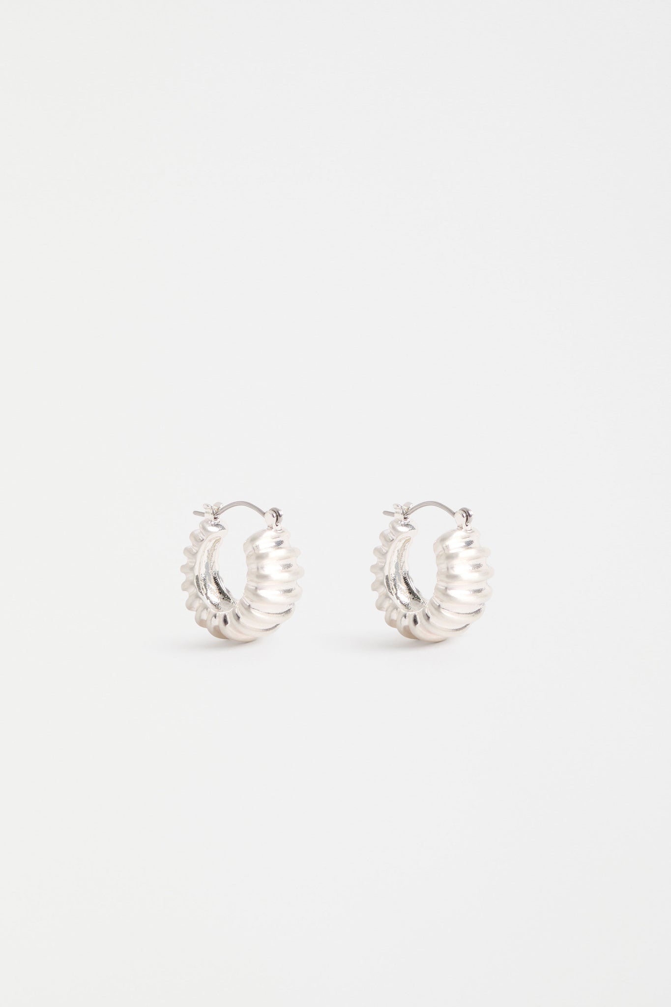 The Ellin Hoop Earrings are a thick, small hoop style with horizontal ridges along the exterior that have been brushed to create further texture. The compact size and lightweight design ensure comfortable everyday wear, while the textured design adds unique interest that is perfect for adding a sophisticated touch to casual and professional looks.