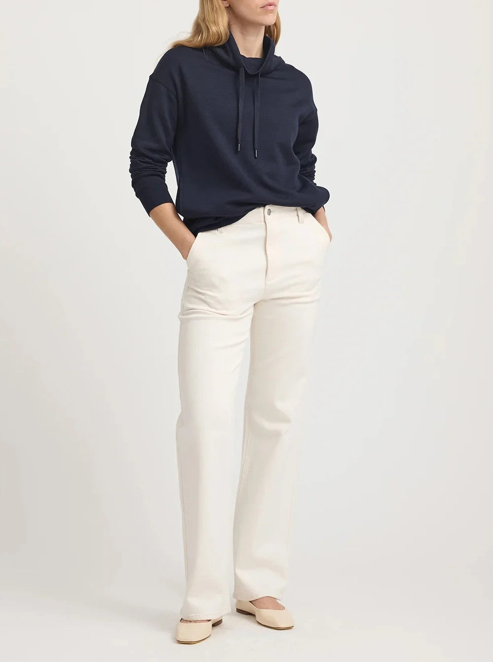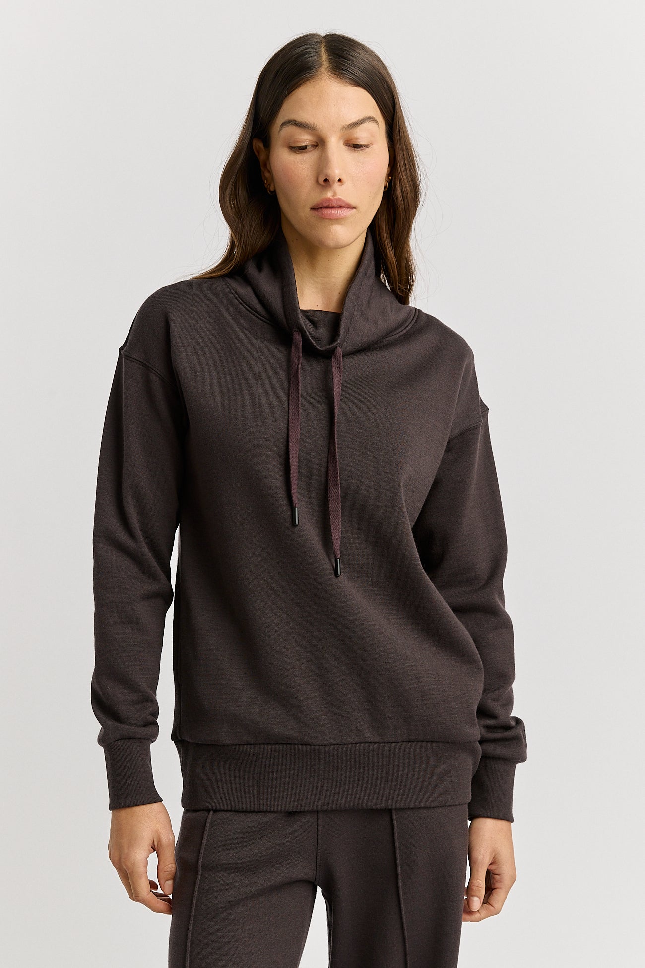 The Lounge Funnel Neck has an extended funnel collar with a cotton drawstring, side-seam pockets, and a relaxed, athletic silhouette. Our Merino Lounge collection is an innovative blend of Australian Merino Wool and brushed Cotton Fleece to form a durable fabric enhanced for comfort and warmth.