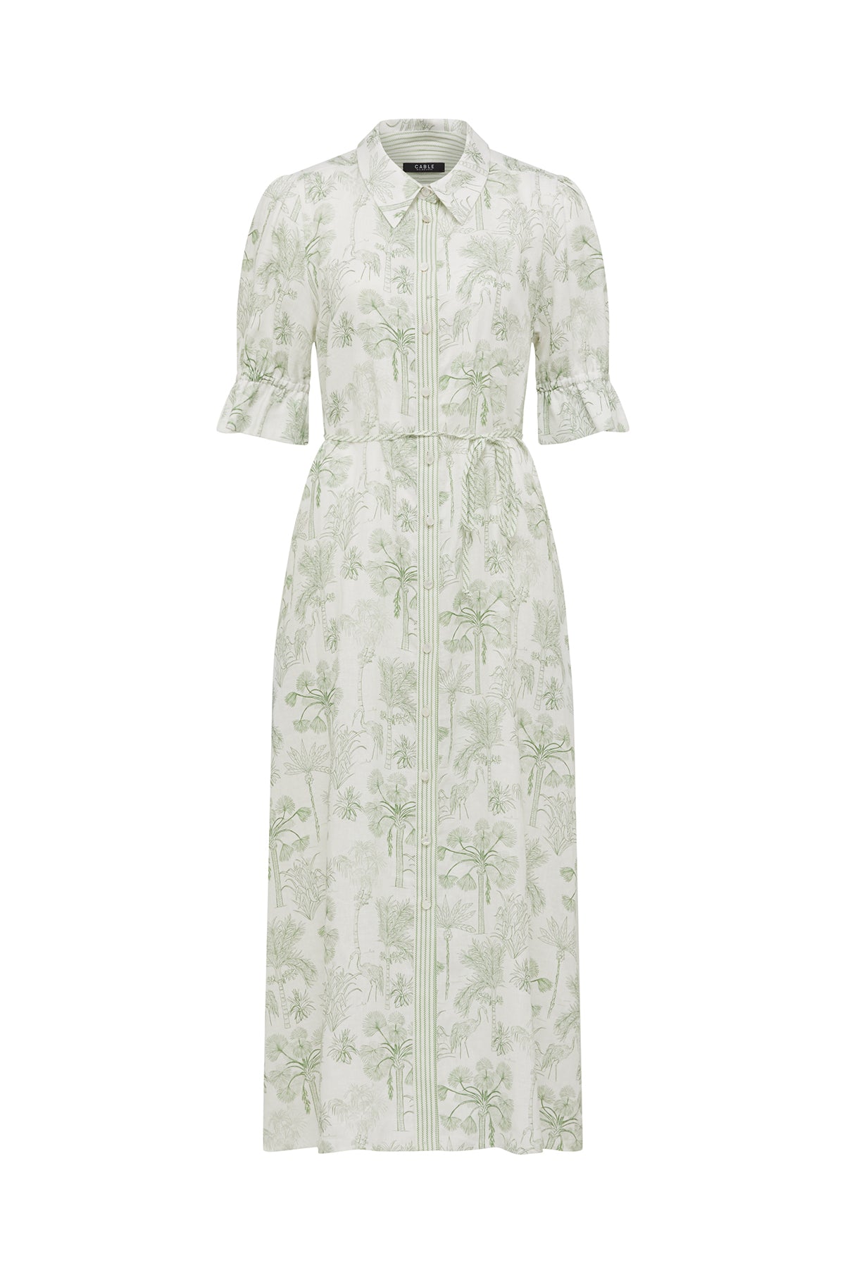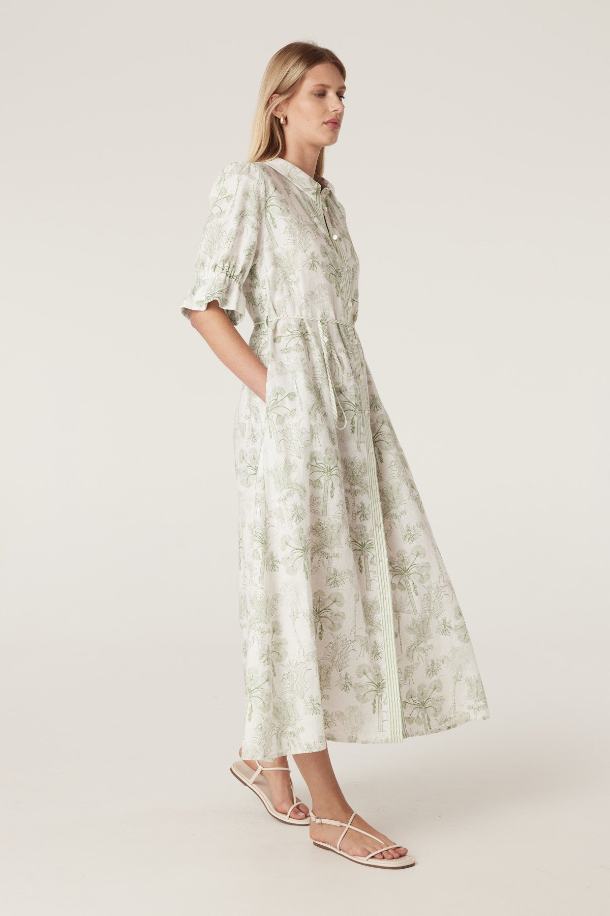 Made from pure French linen in an exclusive print, the Avondale Linen Dress features a regular fit with a classic shirt collar and a button-through front with shell buttons. It includes sleeves with elasticated cuffs, side pockets, and a removable waist tie.