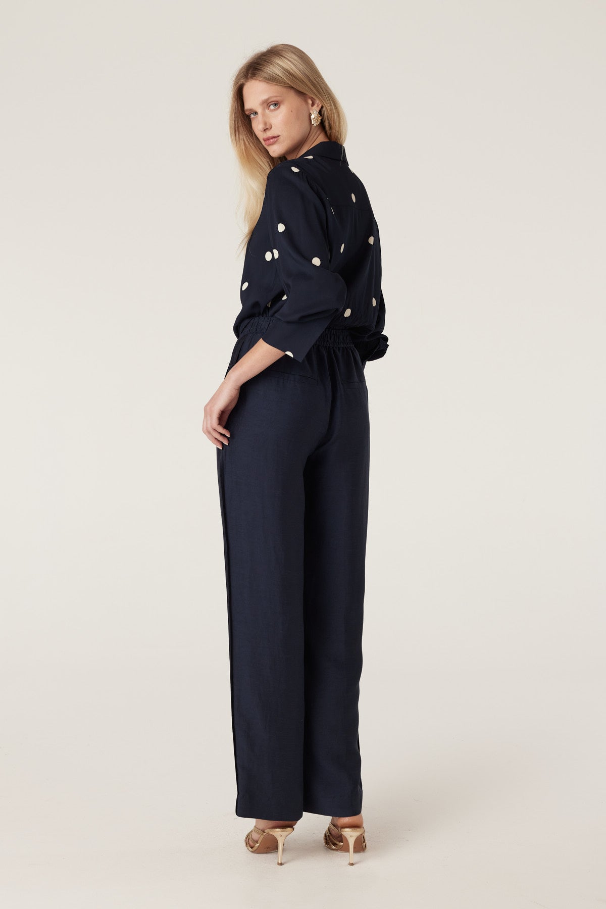The Goldie Pant is a regular fit, straight-leg style featuring a fully elasticated waistband for everyday ease. Designed with functional side pockets, mock back pockets, and subtle binding detail along the side leg.