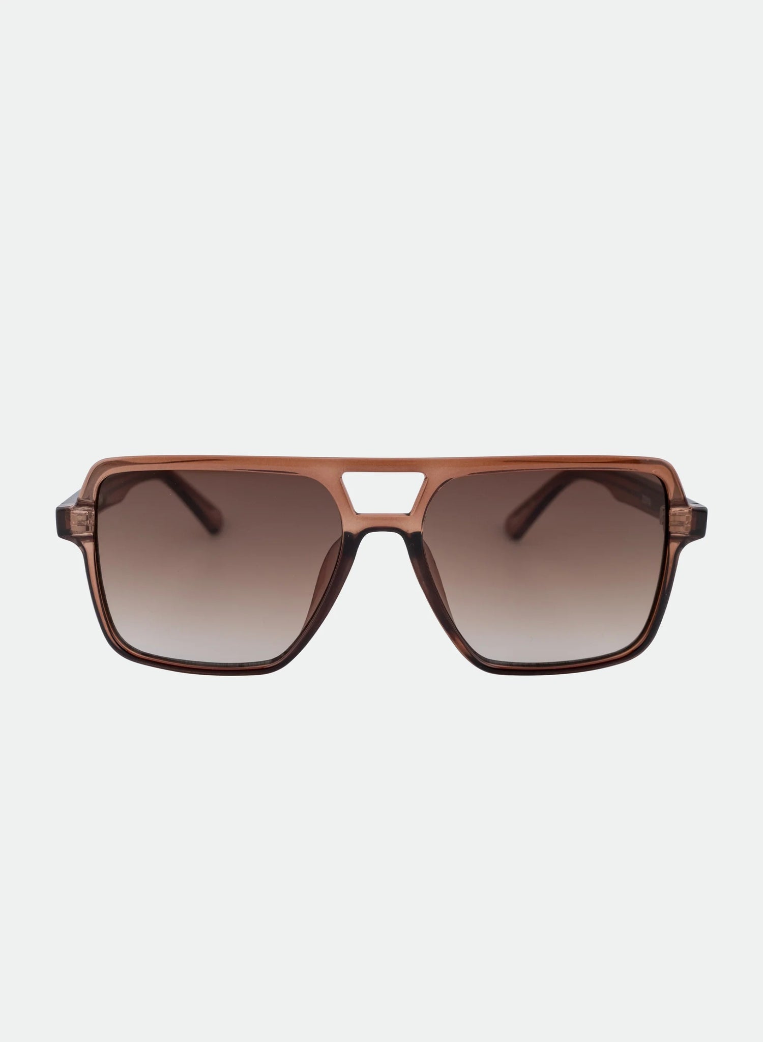 Make a statement with Zoya, an oversized square large aviator sunglass, featuring a softly structured frame in warm transparent maple color. Designed with brown gradient lenses.