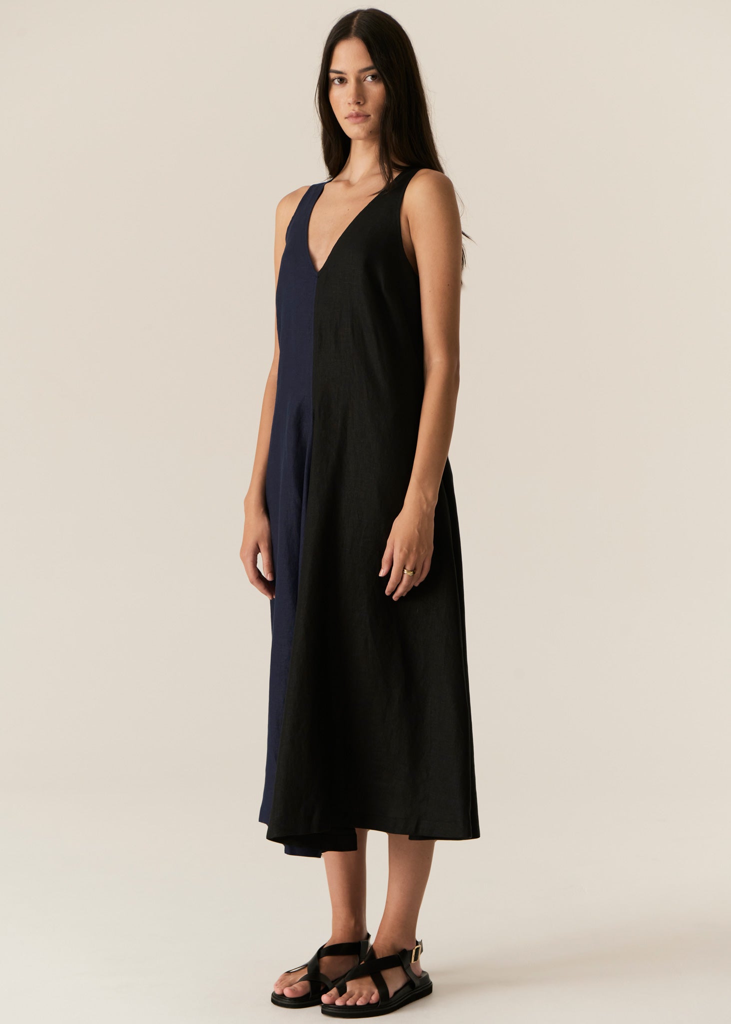 Made from linen in two contrasting colours, the Saga Two Tone Dress is the perfect mix of relaxed and elevated styling.